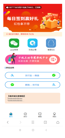 平台不触碰资金,全由微信支付宝QQ自动交换。